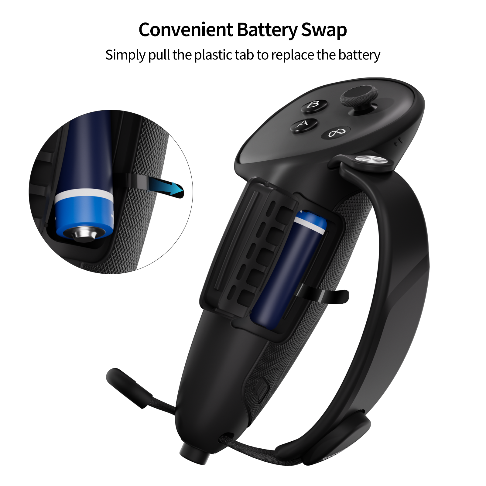 • Design ergonomico: le maniglie estese si adattano comodamente alle mani più grandi, con una superficie strutturata e tappi di joystick per una presa e un controllo migliorate. I fori del segnale assicurano un monitoraggio senza ostacoli Quest 3S/3 per prestazioni di gioco ottimali